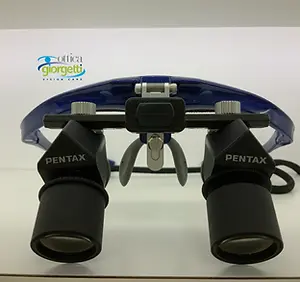 Sistema ingrandente prismatico Pentamag a deflessione su montatura in titanio, visione ergonomica ad alta precisione per odontoiatri e chirurghi a Milano, Italia.